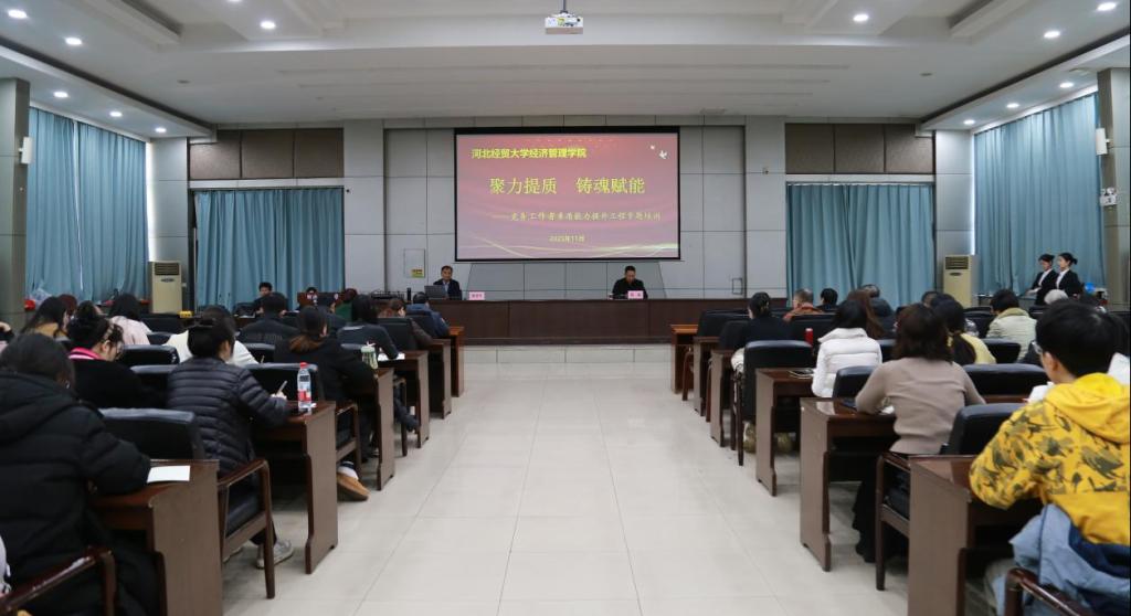 为深入推进"聚力提质、铸魂赋能"党务工作者素质能力提升工程,11月21日,Beat365特邀中共河北省委党校教授、河北省"三三三"人才工程第二层次人选张宏升博士,作题为《深刻领会党的二十届四中全会精神 完整准确全面贯彻新发展理念》的专题讲座。学院党政班子成员、中层管理干部、各系专职组织员、党支部书记及委员、专职辅导员以及学生党员干部代表参加培训。