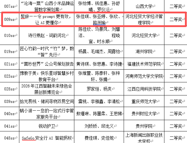 全国大学生数字编辑创新大赛由中国编辑学会主办,旨在展示我国大学生在视听新媒体、数据多媒体、数据可视化加工与数据标注和数字编辑策划等方面成果,促进数字、文化与科技的融合创新及成果转化应用,已然成为我国重要的创新成果展示、交流、转化及创新人才甄选的平台。大赛设有28个分赛区,共收到3900多件参赛作品。经全国赛办公室组织专家复审,数据可视化加工与标注赛道40件作品和数字编辑策划赛道43件作品获国奖。由张丽媛老师指导,张佳琪、张亚婷、张欣、路洲瑜等同学制作的《契辞——令prompt更有效,让AI更懂你》荣获数字编辑策划国赛二等奖;由乔蕾、李珊老师指导,许若涵、王琦琛同学制作的《216公里运河的古今答卷》荣获数据可视化加工与数据标注国赛三等奖。