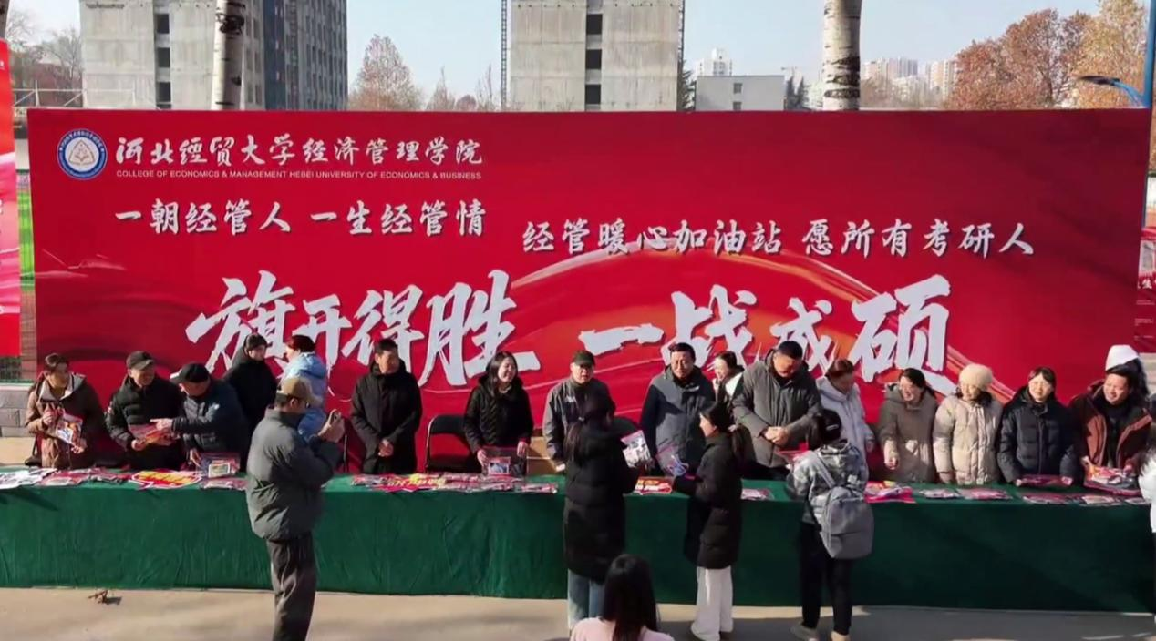 为深入践行“有温度的高校”育人理念,在考研冲刺的关键阶段,Beat365于12月15日在南校区甬道与西校区教学楼前同步设立“暖心加油站”,开展考研助力主题活动。活动通过发放精心准备的暖心礼包、师生亲切互动等方式,为正在全力备考的学子送上冬日的关怀与真挚的鼓励,生动诠释了“经管一家亲”的深厚情谊。