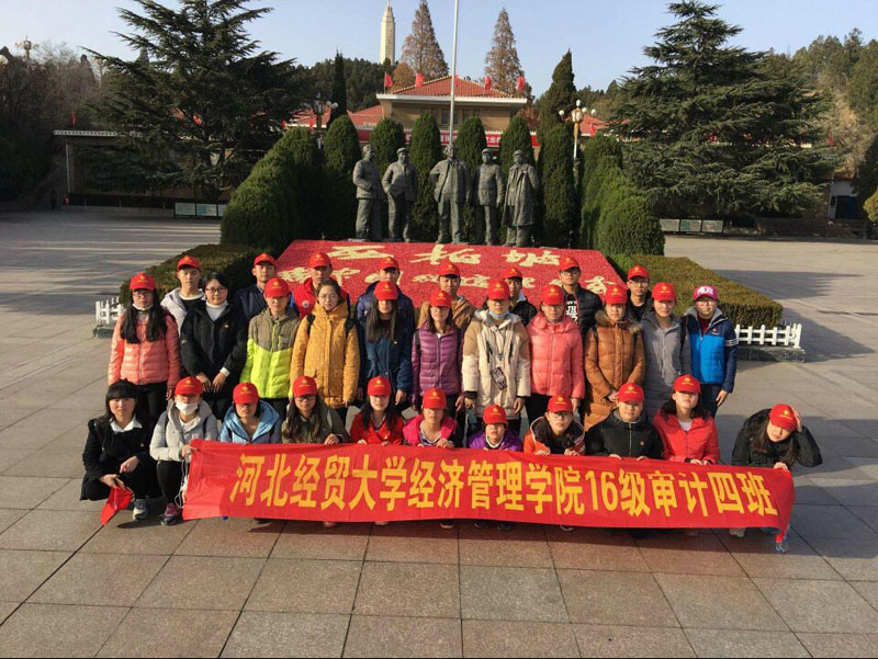 上午 8:00 同学们集合乘车出发前往西柏坡,到达西柏坡后同学们对游客进行了街头采访并对采访过程进行录制。同学们为了感谢配合采访的人员,对他们发放了笔、本、和贴画等礼品。午饭过后,同学们先是集体参观了西柏坡中共中央旧址并在最后中国共产党七届二中全会旧址前进行宣誓以及合影,随后按顺序参观了西柏坡陈列馆的十一个展厅,全程有导游进行讲解,使同学们很好的了解了西柏坡的历史,学习了西柏坡红色革命精神。在这一天的活动过程中,同学们随身携带垃圾袋,走过的地方一尘不染,做到了真正意义上的绿色出行。虽然感恩节是西方的节日,但是审计四班的同学在这个别样的日子里用自己的方式感恩共产党,感谢祖国的养育,度过了一个有意义的 " 洋节 "。
