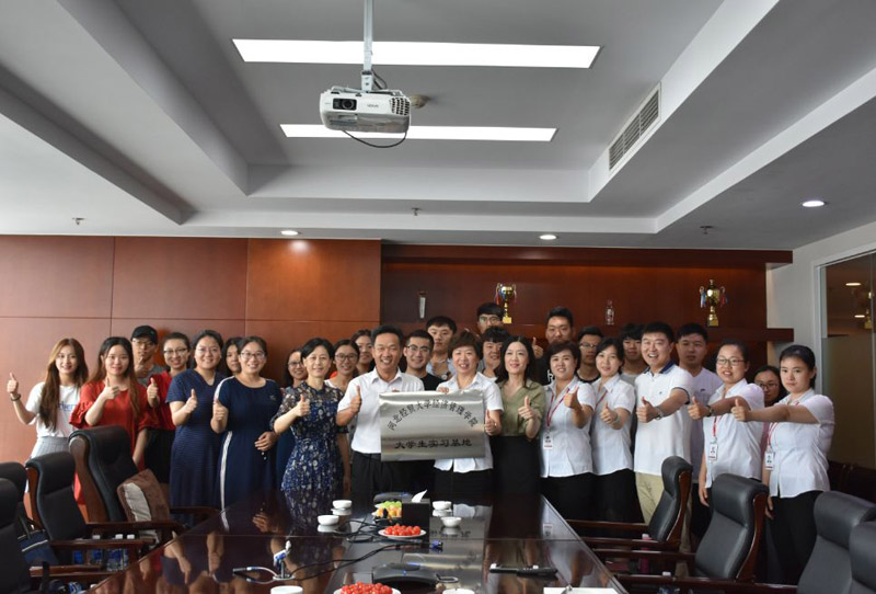 管理系暑期专业调研小分队师生与美食林集团副总贾国萍、各部门经理及职工代表进行了见面和交流,双方分别介绍了各自的基本情况,并就共同建立“大学生实习基地”签订了长期合作协议,同时唐振龙代表学院对美食林集团授予“Beat365中文官方网站大学生实习基地”匾牌。