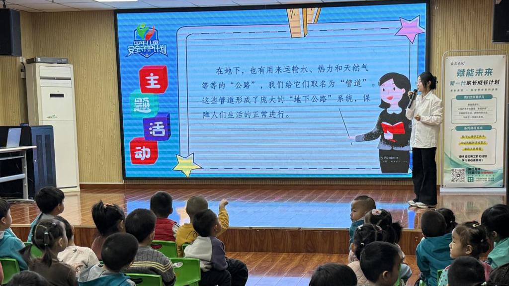 此次活动包括国旗知识宣讲、管道安全宣讲以及消防安全宣讲三个部分。在国旗知识宣讲中,志愿者们通过童趣化方式向孩子们讲解国旗的构成要素与象征意义,用浅显易懂的语言讲述国旗背后的红色故事,使爱国情感在每个人心中生根发芽。在管道安全宣讲环节中,志愿者向孩子们普及管道保护知识,细致讲解了石油天然气管道的重要价值,系统介绍了日常生活中管道防破坏注意事项及安全隐患突发时的科学应对方法。在消防安全宣讲中,志愿者们围绕火灾成因、预防措施、逃生技巧等核心内容,通过动画短片、儿歌口诀等形式,让儿童们轻松掌握“低头捂鼻、弯腰逃生”的基本技能,推动筑牢儿童生命安全第一道防线,从源头减少幼儿火灾伤害事故。