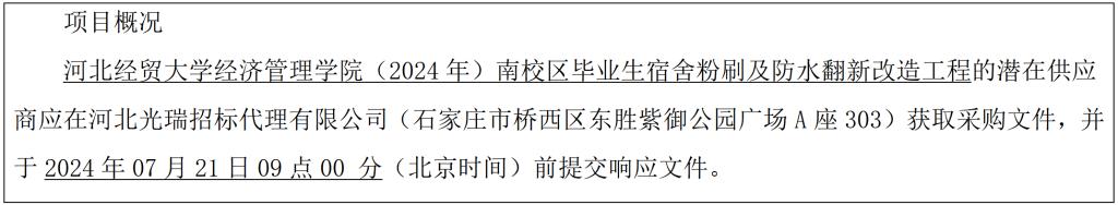 投标文件递交的截止时间(投标截止时间,下同)为 2024年07月21日09点00分(北京时间) ,地点为河北光瑞招标代理有限公司(石家庄市桥西区东胜紫御公园广场A座303)。