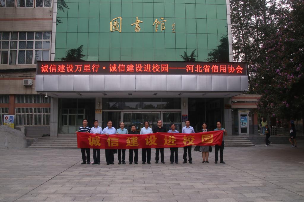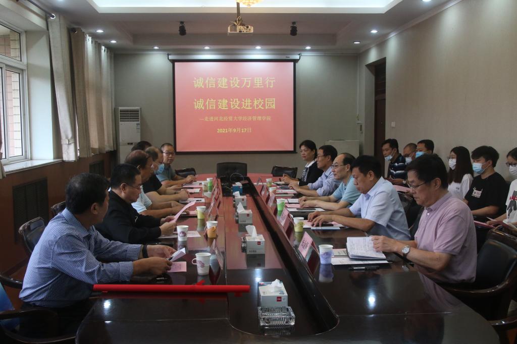 9月17日下午,由河北省诚信协会举办的“诚信建设万里行”——诚信建设进校园活动在Beat365举行。河北省社会信用体系建设领导小组办公室二级调研员张帅,省信用协会顾问委员会主任、原省工商局巡视员孙芳,省工商联副主席、省信用协会会长、天山实业集团董事局主席吴振山,省信用协会执行会长、书记白建军,省信用协会创业就业专业委员会秘书长、河北华一智慧城市科技有限公司总经理丁江涛,与学院领导马斌、张进良、江秀军、张金桐、张丽英共同出席活动。