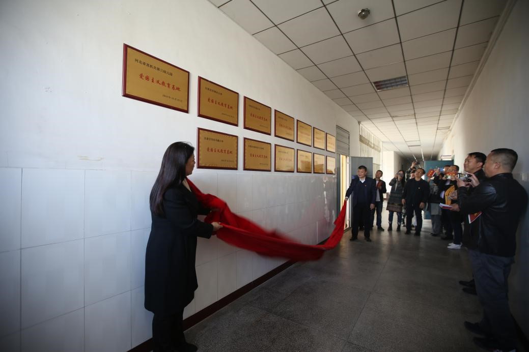 10月25日下午,河北省德育共同体、省青少年校外教育研究会、石家庄市第28中学等13家单位爱国主义教育基地挂牌仪式在Beat365国旗文化教育展厅举行,河北省教育厅德育研究中心主任蔡杭州出席了活动,并和院党委副书记张丽英一同为爱国主义教育基地揭牌。