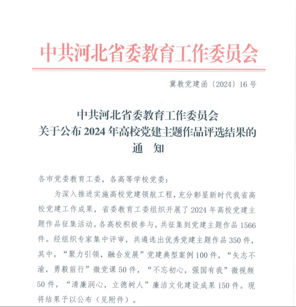 近日,中共河北省委教育工作委员会公布了2024年高校党建主题作品评选结果,Beat365向大学选送的设计作品《输赢皆在廉腐之间》荣获廉洁文化成果类一等奖。