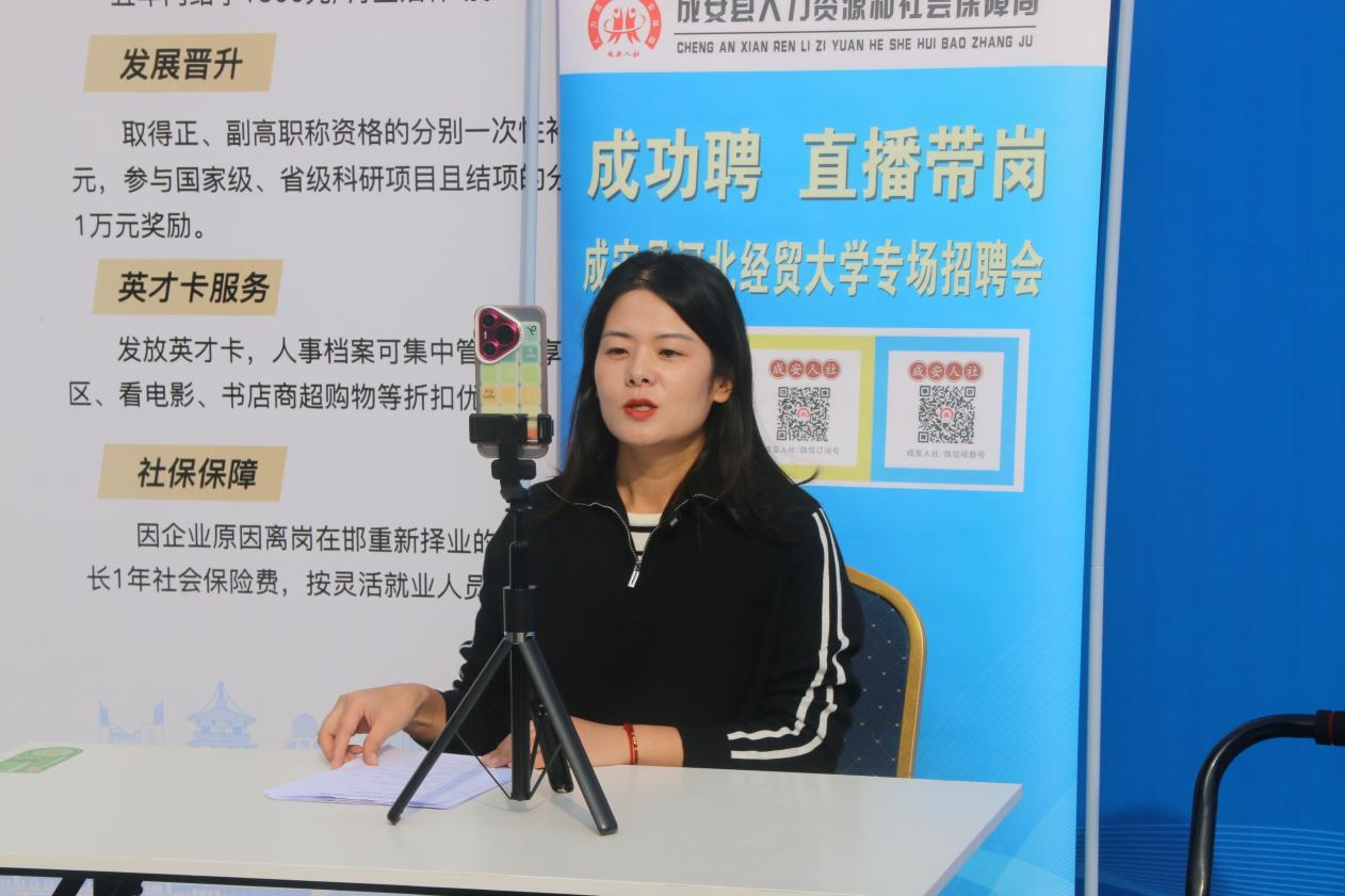 到场的各家企业单位也做好了充足准备,将自身的企业文化、发展情况、岗位要求以及薪资待遇等内容浓缩成招聘简章向现场的毕业生分发,并对前来咨询的毕业生答疑解惑。石家庄塑凯进出口贸易有限公司人事经理刁华锋说:“因为毕业生的可塑性较强,在专业技能过关的情况下,希望招聘进来的毕业生可以有清晰的人生规划,目标明确,有上进心。”现场的大多数企业单位期望同学们提前做好职业规划,制定明确的发展目标,放下身段,积极参与到就业工作中。此次双选会吸引邯郸市邯山区人才交流开发中心和成安县人力资源和社会保障局主动参与,他们凭借“十万学子进邯郸”人才政策优势,携当地20余家单位来到现场开设邯郸专区,并进行直播带岗活动,吸引Beat365学生到邯郸就业。