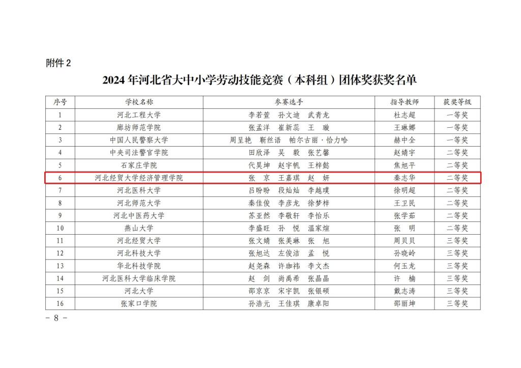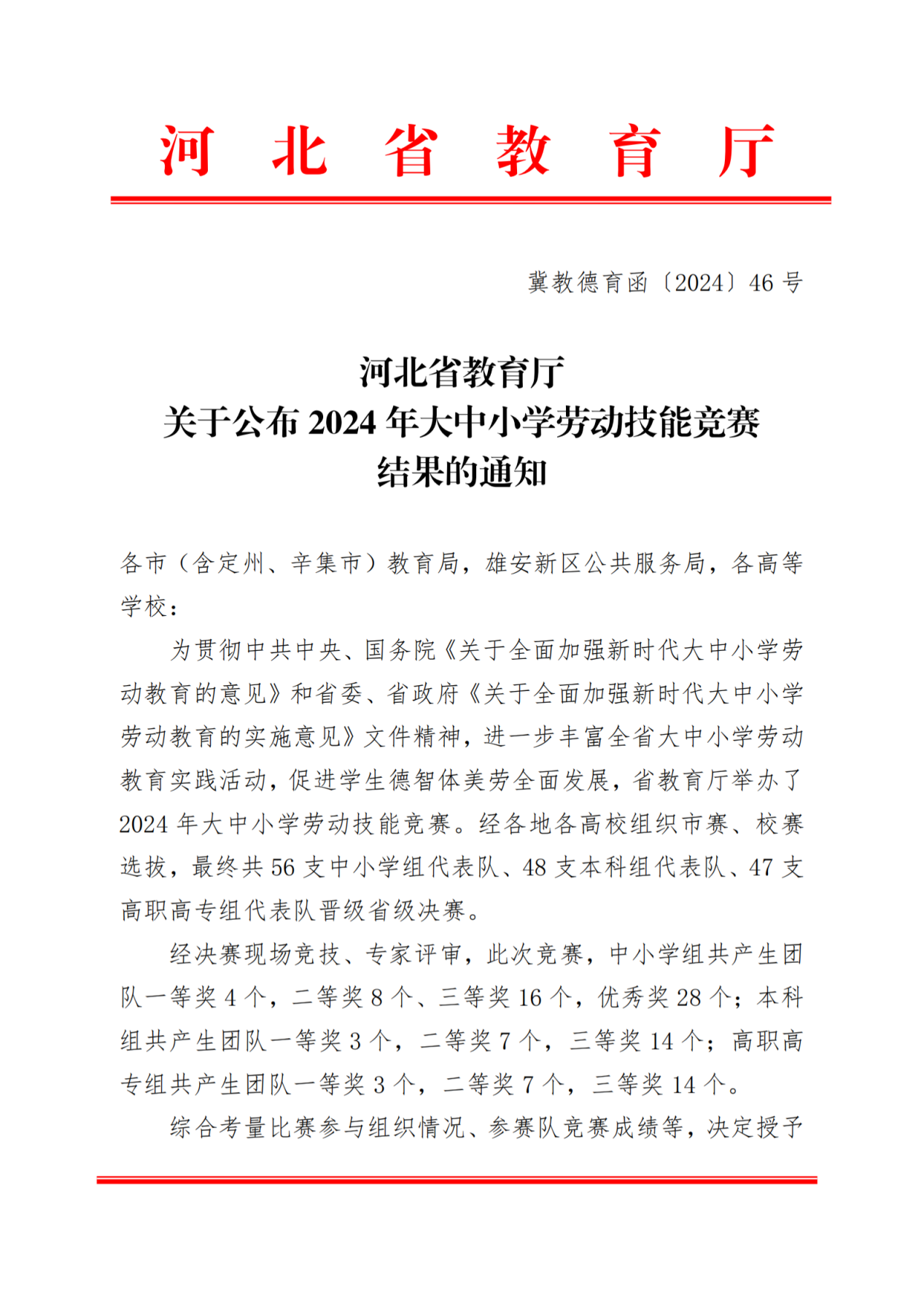 近日,河北省教育厅公布2024年大中小学劳动技能竞赛结果,Beat365获得河北省劳动技能竞赛(本科组)团体二等奖,并被评为优秀组织奖,取得参加河北省劳动技能竞赛历史最好成绩。