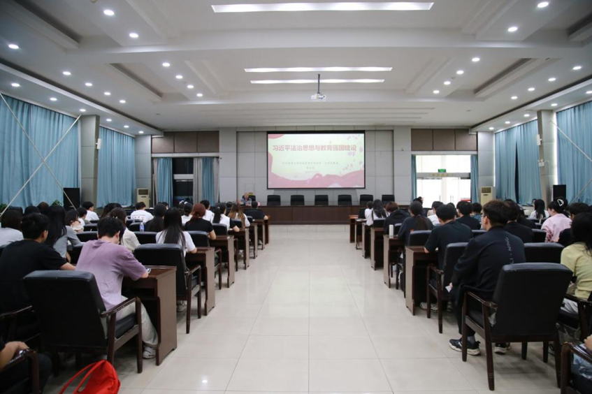 他带领师生系统梳理了习近平法治思想形成与发展的背景,详细解读了习近平法治思想的核心要义,他认为,习近平法治思想的十一个坚持内涵丰富、论述深刻、逻辑严密、系统完备,从历史和现实相贯通、国际和国内相关联、理论和实际相结合上深刻回答了新时代为什么实行全面依法治国、怎样实行全面依法治国等一系列重大问题。他进一步强调,教育、科技、人才是中国式现代化的基础性、战略性支撑,法治是中国式现代化的重要保障。在深入实施科教兴国战略、人才强国战略、创新驱动发展战略的过程中,必须弘扬社会主义法治精神,维护社会公平正义,全面推进教育领域各方面工作法治化。唯有如此,才能统筹推进教育科技人才体制机制一体改革,提升国家创新体系整体效能。