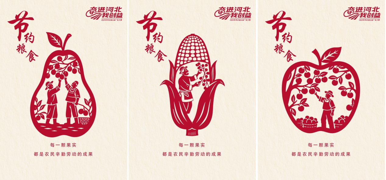 本届大赛以“奋进河北我创益”为主题,面向全社会广泛征集兼具专业性、思想性、文化性和艺术性的优秀公益广告作品,聚焦“爱党爱国,强国有我”“美丽河北,双争有我”“高质量发展,建功有我”“珍惜水资源,节水有我”等四大方向,设置平面类、文案类、视频类、音频类、互动类等五大类别。大赛鼓励使用多种形式进行公益创意表达,坚持守正创新,紧扣时代脉搏,为精神文明建设持续注入活力。文法系王晶同学凭借扎实的艺术功底、深厚的专业素养、卓越的创意才能一人斩获18个奖项。王晶同学的作品主题多元,种类丰富,形式各异。《听完孩子的话》以独特的切入角度、新颖的展现手法、细腻的情感表达荣获平面类一等奖,它采用“父母视力表”的创意形式,将儿童心理健康诉求转化为“心理视力表”的视觉语言,检测亲子间对心理信号的感知度,呼吁家长关注儿童心理“视力”,感知孩子情绪需求。《剪纸绘农勤,惜栗承美德》等4部作品荣获平面类三等奖,《餐桌上的污染》等7部作品和《万物生,华夏兴》等6部作品分别荣获平面类和文案类优秀奖。