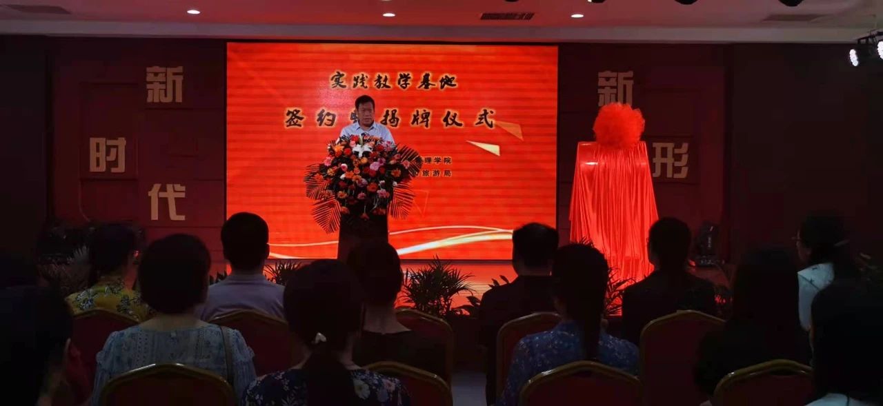 在全场嘉宾及领导的共同见证下,学院领导张金桐与临漳县文化广电和旅游局局长张太平签署合作协议,与临漳县副县长杨艳峰共同为基地揭牌。