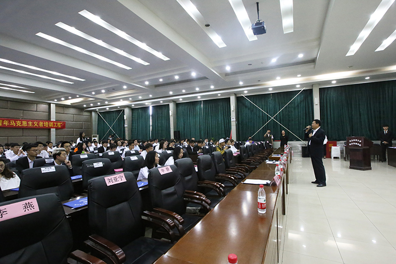 开班仪式后,张进良以《如何做一名坚定的马克思主义者》为题,为青马学员上了一堂生动的党课。他首先解释了什么是马克思主义,分析了国际社会对马克思主义的评价,详细解读了习近平在马克思诞辰200周年大会上的讲话精神。报告会以提问的形式,带领学生步步深入,逐步探索马克思主义的实质精髓,并结合社会现状和学院学风,引导学生们做一名坚定的马克思主义者。学生们边听边记,全情投入。